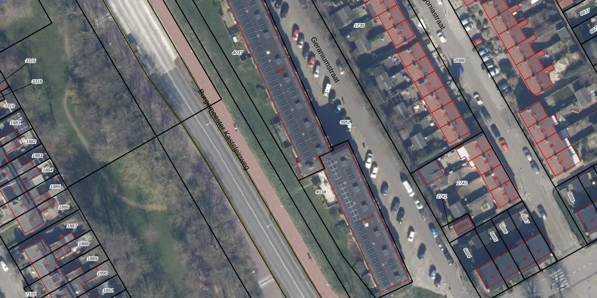 Het perceel waarop Geraniumstraat 95 staat heeft een oppervlakte van 1282 m². Dit is een zeer groot perceel. De perceeloppervlakte wordt geregistreerd door het Kadaster. Gedetailleerde informatie over de maten van dit perceel kunt u vinden in het rapport Kadastrale kaart met maatvoering van Geraniumstraat 95.