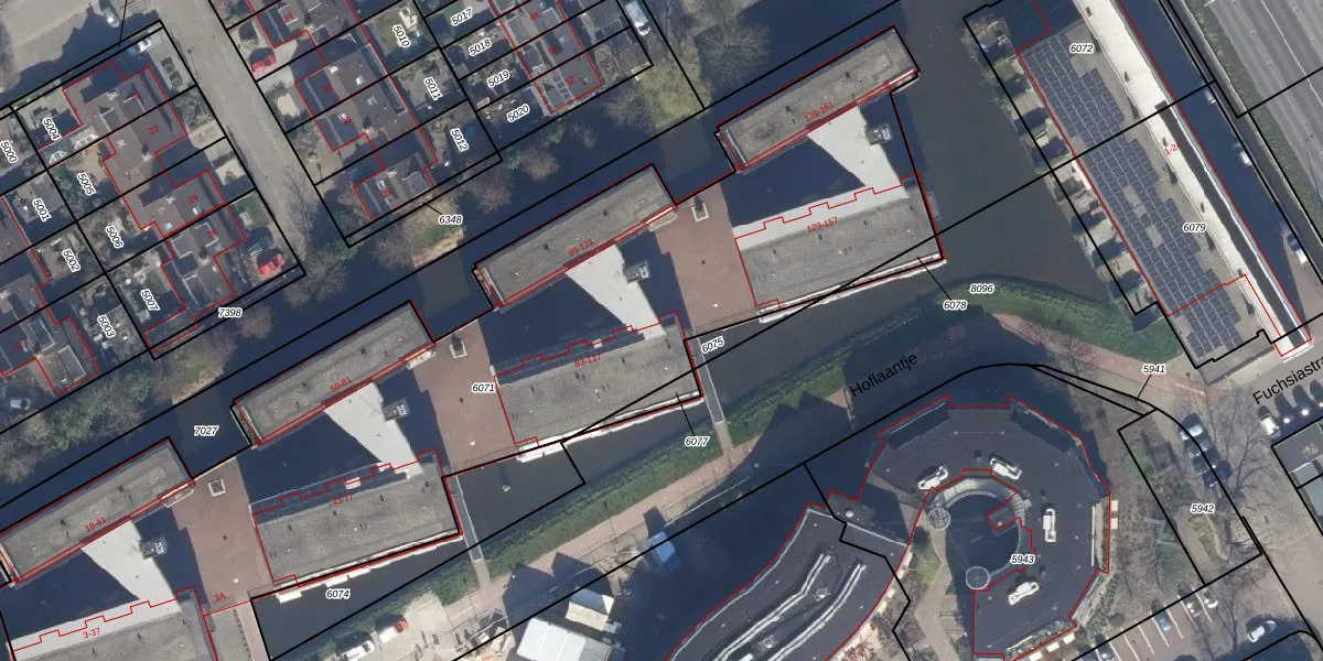 Het perceel waarop Gerberastraat 115 staat heeft een oppervlakte van 4446 m². Dit is een zeer groot perceel. De perceeloppervlakte wordt geregistreerd door het Kadaster. Gedetailleerde informatie over de maten van dit perceel kunt u vinden in het rapport Kadastrale kaart met maatvoering van Gerberastraat 115.