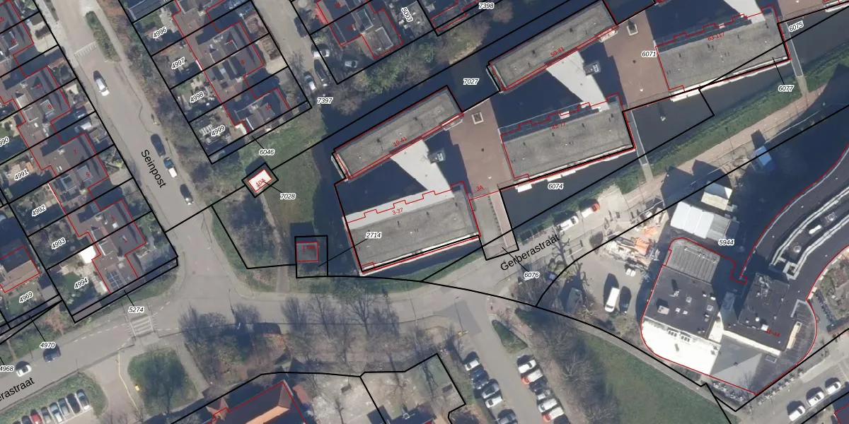 Het perceel waarop Gerberastraat 25 staat heeft een oppervlakte van 4446 m². Dit is een zeer groot perceel. De perceeloppervlakte wordt geregistreerd door het Kadaster. Gedetailleerde informatie over de maten van dit perceel kunt u vinden in het rapport Kadastrale kaart met maatvoering van Gerberastraat 25.