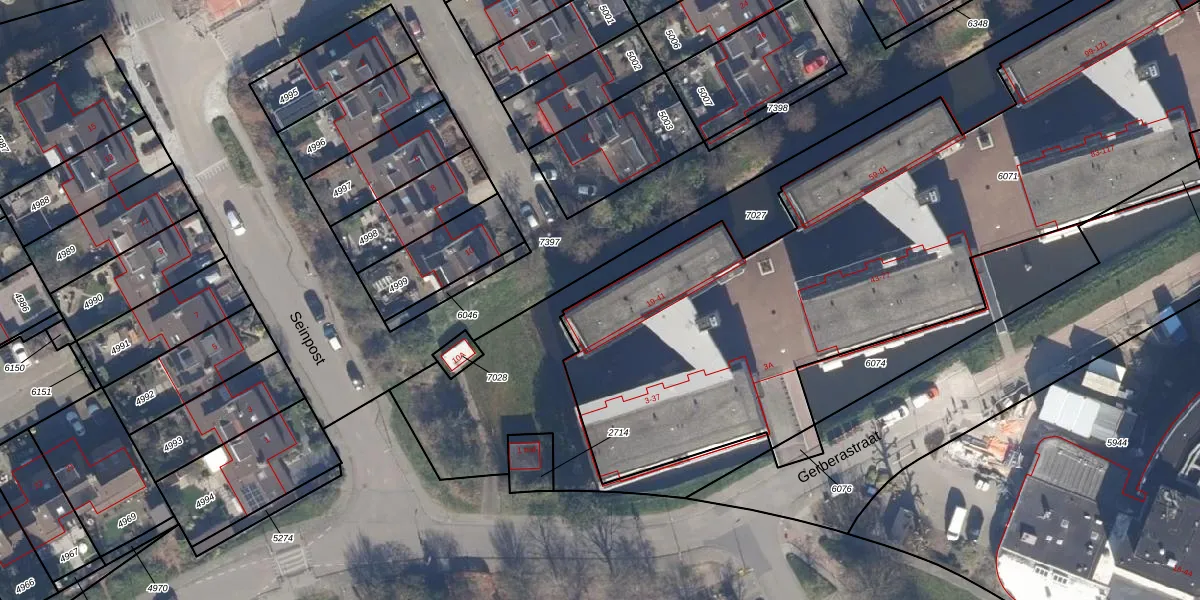 Het perceel waarop Gerberastraat 39 staat heeft een oppervlakte van 4446 m². Dit is een zeer groot perceel. De perceeloppervlakte wordt geregistreerd door het Kadaster. Gedetailleerde informatie over de maten van dit perceel kunt u vinden in het rapport Kadastrale kaart met maatvoering van Gerberastraat 39.