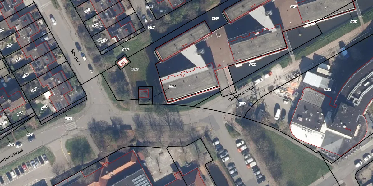 Het perceel waarop Gerberastraat 7 staat heeft een oppervlakte van 4446 m². Dit is een zeer groot perceel. De perceeloppervlakte wordt geregistreerd door het Kadaster. Gedetailleerde informatie over de maten van dit perceel kunt u vinden in het rapport Kadastrale kaart met maatvoering van Gerberastraat 7.