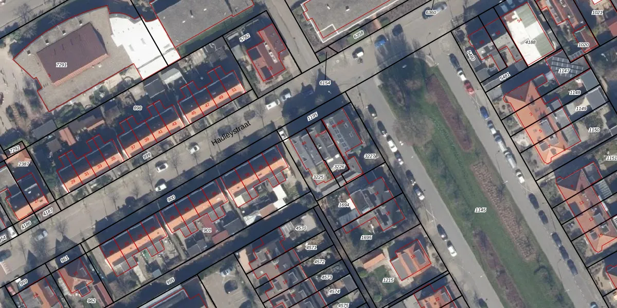 Het perceel waarop Hadleystraat 44-b staat heeft een oppervlakte van 188 m². Dit is een middelgroot perceel. De perceeloppervlakte wordt geregistreerd door het Kadaster. Gedetailleerde informatie over de maten van dit perceel kunt u vinden in het rapport Kadastrale kaart met maatvoering van Hadleystraat 44-b.