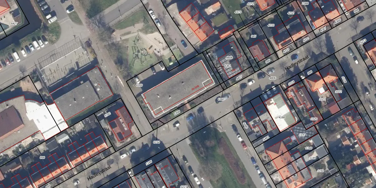 Het perceel waarop Hadleystraat 55-B staat heeft een oppervlakte van 975 m². Dit is een groot perceel. De perceeloppervlakte wordt geregistreerd door het Kadaster. Gedetailleerde informatie over de maten van dit perceel kunt u vinden in het rapport Kadastrale kaart met maatvoering van Hadleystraat 55-B.