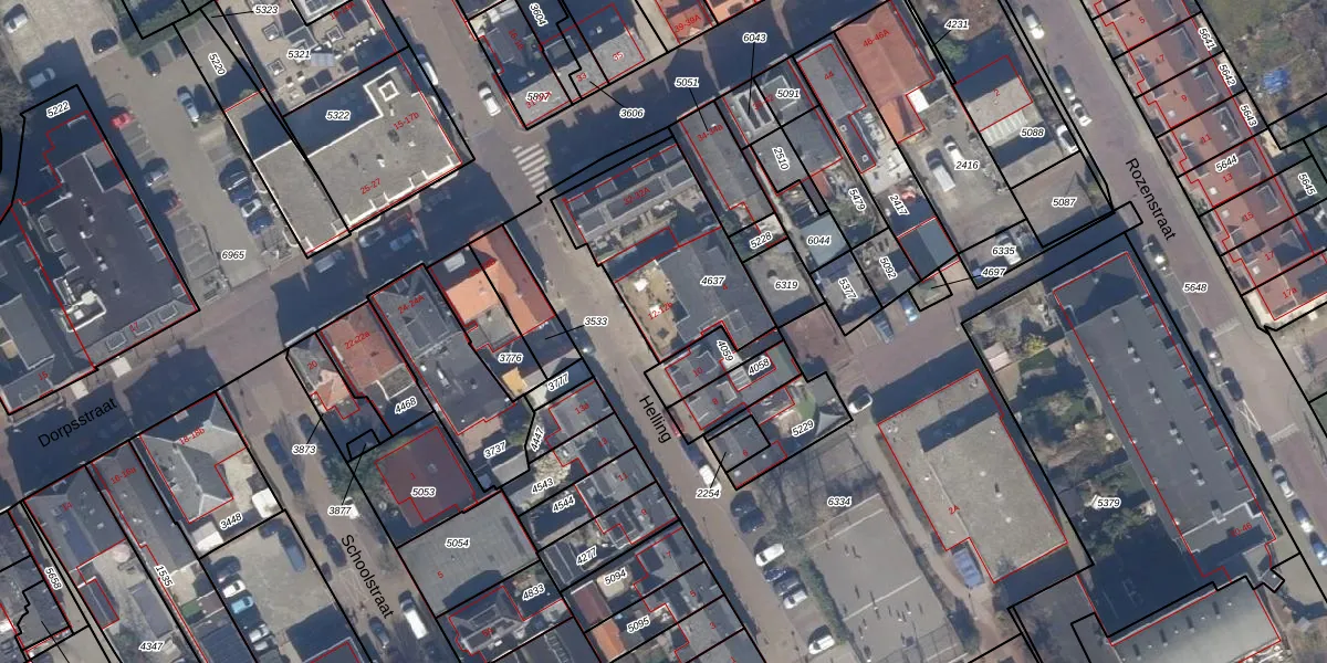 Het perceel waarop Helling 12-b staat heeft een oppervlakte van 585 m². Dit is een groot perceel. De perceeloppervlakte wordt geregistreerd door het Kadaster. Gedetailleerde informatie over de maten van dit perceel kunt u vinden in het rapport Kadastrale kaart met maatvoering van Helling 12-b.
