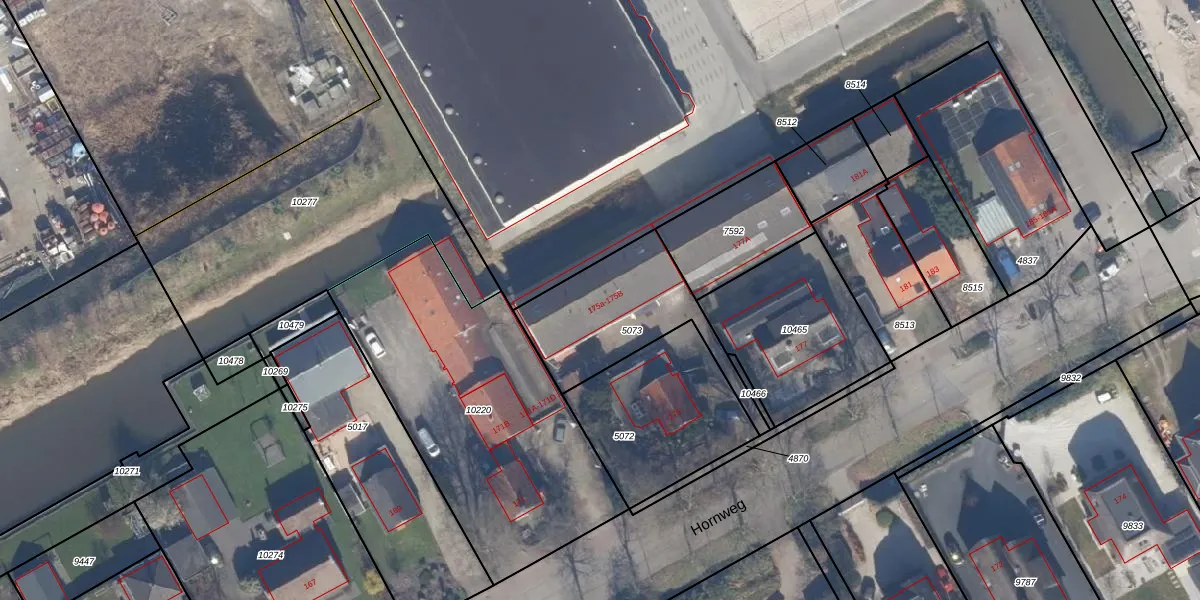 Het perceel waarop Hornweg 175-a staat heeft een oppervlakte van 490 m². Dit is een groot perceel. De perceeloppervlakte wordt geregistreerd door het Kadaster. Gedetailleerde informatie over de maten van dit perceel kunt u vinden in het rapport Kadastrale kaart met maatvoering van Hornweg 175-a.