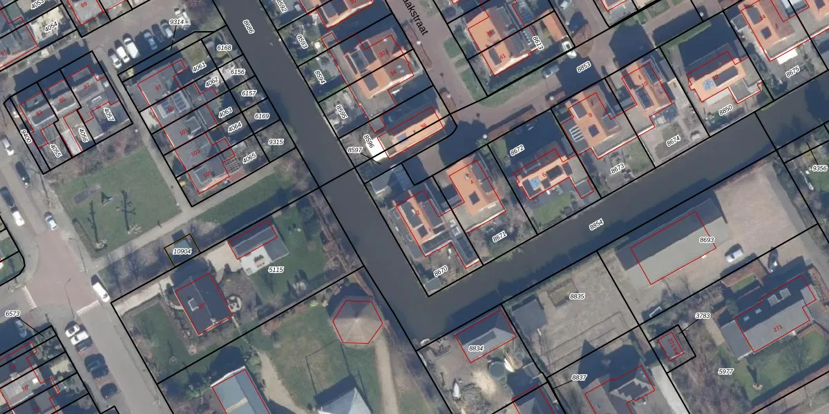 Gebruik de zoekbalk of klik op een perceel voor informatie over de adressen binnen dit perceel.