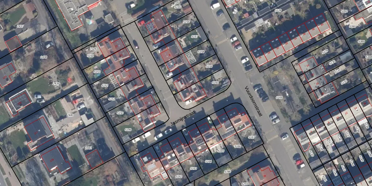 Het perceel waarop Jasmijnstraat 2 staat heeft een oppervlakte van 311 m². Dit is een groot perceel. De perceeloppervlakte wordt geregistreerd door het Kadaster. Gedetailleerde informatie over de maten van dit perceel kunt u vinden in het rapport Kadastrale kaart met maatvoering van Jasmijnstraat 2.
