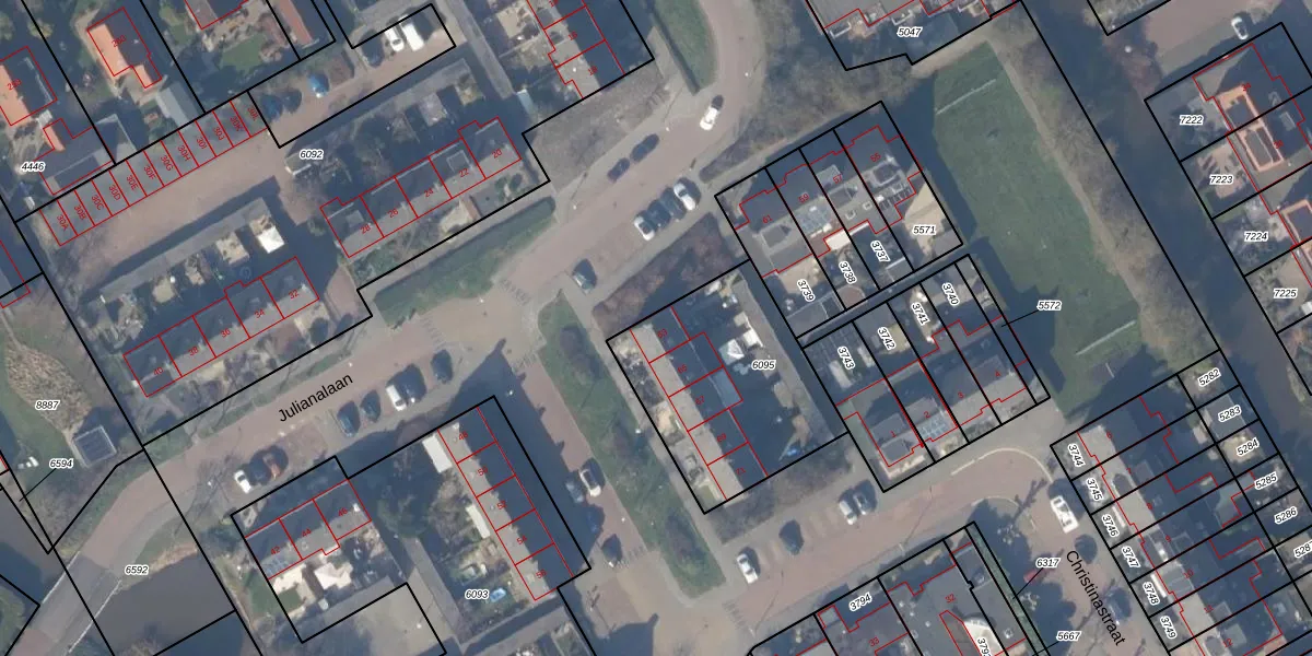 Het perceel waarop Julianalaan 63 staat heeft een oppervlakte van 770 m². Dit is een groot perceel. De perceeloppervlakte wordt geregistreerd door het Kadaster. Gedetailleerde informatie over de maten van dit perceel kunt u vinden in het rapport Kadastrale kaart met maatvoering van Julianalaan 63.