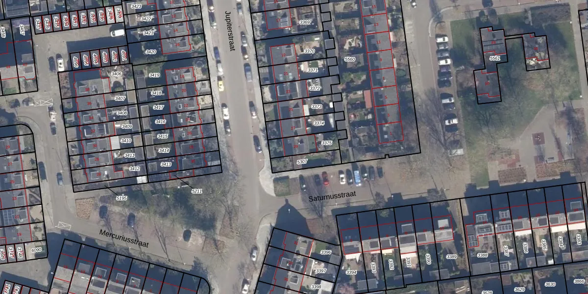 Het perceel waarop Jupiterstraat 29 staat heeft een oppervlakte van 162 m². Dit is een middelgroot perceel. De perceeloppervlakte wordt geregistreerd door het Kadaster. Gedetailleerde informatie over de maten van dit perceel kunt u vinden in het rapport Kadastrale kaart met maatvoering van Jupiterstraat 29.