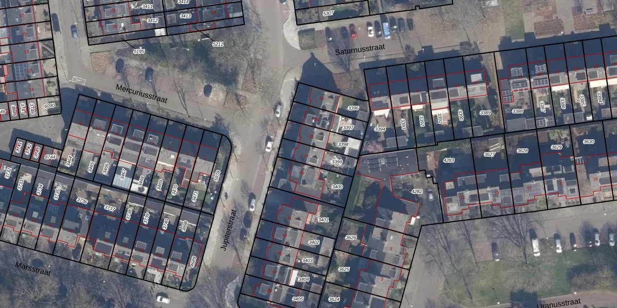 Gebruik de zoekbalk of klik op een perceel voor informatie over de adressen binnen dit perceel.