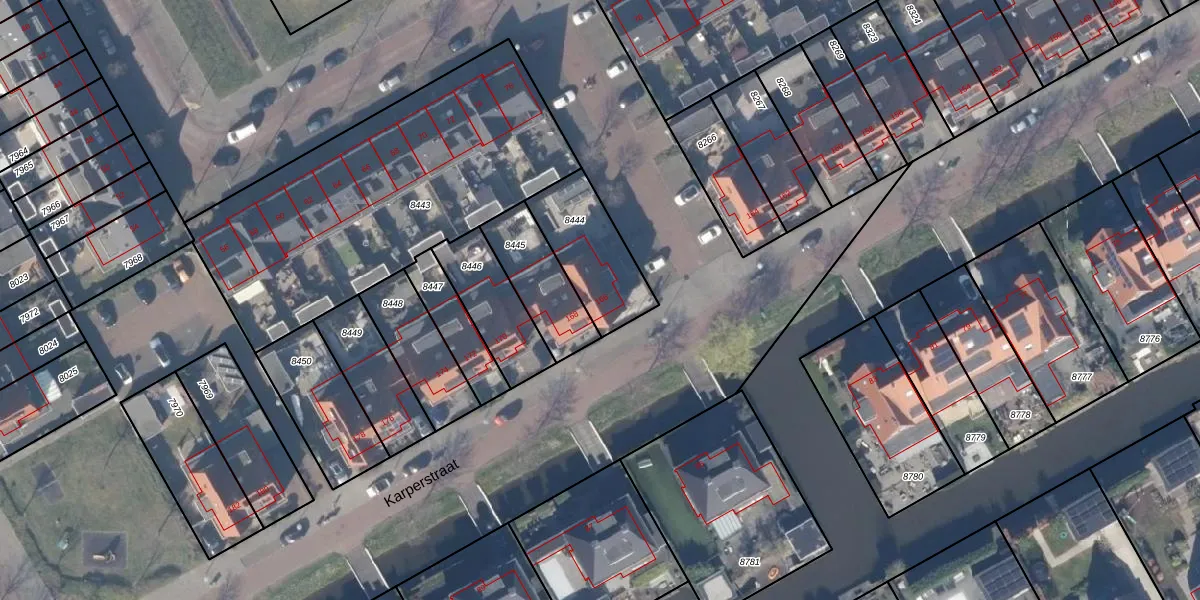 Gebruik de zoekbalk of klik op een perceel voor informatie over de adressen binnen dit perceel.