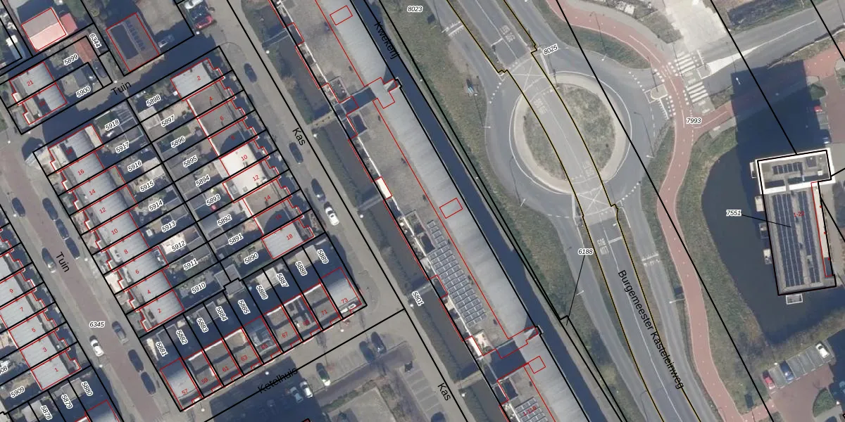 Het perceel waarop Kas 35 staat heeft een oppervlakte van 3301 m². Dit is een zeer groot perceel. De perceeloppervlakte wordt geregistreerd door het Kadaster. Gedetailleerde informatie over de maten van dit perceel kunt u vinden in het rapport Kadastrale kaart met maatvoering van Kas 35.