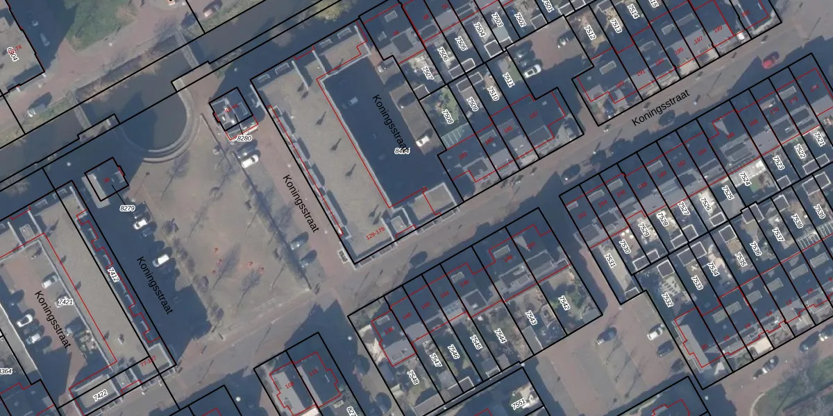 Het perceel waarop Koningsstraat 145 staat heeft een oppervlakte van 1605 m². Dit is een zeer groot perceel. De perceeloppervlakte wordt geregistreerd door het Kadaster. Gedetailleerde informatie over de maten van dit perceel kunt u vinden in het rapport Kadastrale kaart met maatvoering van Koningsstraat 145.
