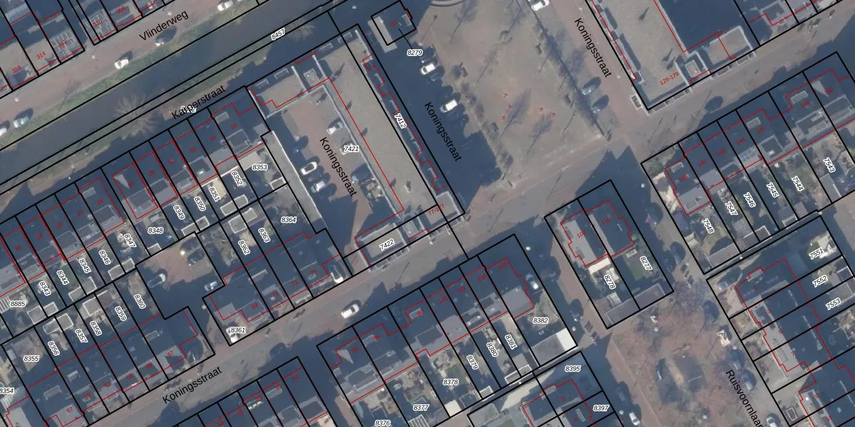 Het perceel waarop Koningsstraat 95 staat heeft een oppervlakte van 126 m². Dit is een middelgroot perceel. De perceeloppervlakte wordt geregistreerd door het Kadaster. Gedetailleerde informatie over de maten van dit perceel kunt u vinden in het rapport Kadastrale kaart met maatvoering van Koningsstraat 95.