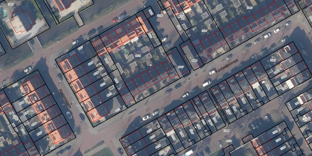 Koolwitjestraat 121 is gelegen op kadastraal perceel AMR03B8531. Deze kadastrale aanduiding is uniek en wordt gebruikt door het Kadaster om eigendomsrechten en andere zakelijke rechten vast te leggen. Het perceel maakt onderdeel uit van de kadastrale gemeente Aalsmeer.