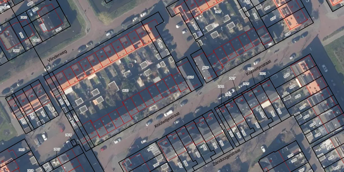 Het perceel waarop Koolwitjestraat 83 staat heeft een oppervlakte van 3080 m². Dit is een zeer groot perceel. De perceeloppervlakte wordt geregistreerd door het Kadaster. Gedetailleerde informatie over de maten van dit perceel kunt u vinden in het rapport Kadastrale kaart met maatvoering van Koolwitjestraat 83.