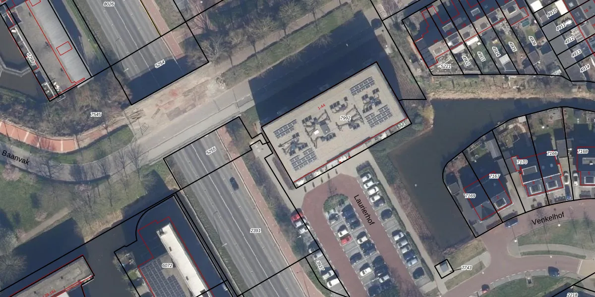 Het adres ligt op het perceel AMR03-C-7992, dat zich in de kadastrale gemeente Aalsmeer bevindt. De gemiddelde perceelgrootte in Aalsmeer is 1739,55 m². Dit perceel is kleiner: de perceeloppervlakte bedraagt 1060 m². De grootste perceeloppervlakte in de kadastrale gemeente is 98,4 ha. De kleinste oppervlakte bedraagt 0 m². Op het perceel zijn 44 adressen aanwezig. De huidige grenzen van het perceel zijn digitaal in de Basisregistratie Kadaster (BRK) geregistreerd op 28-07-2023.