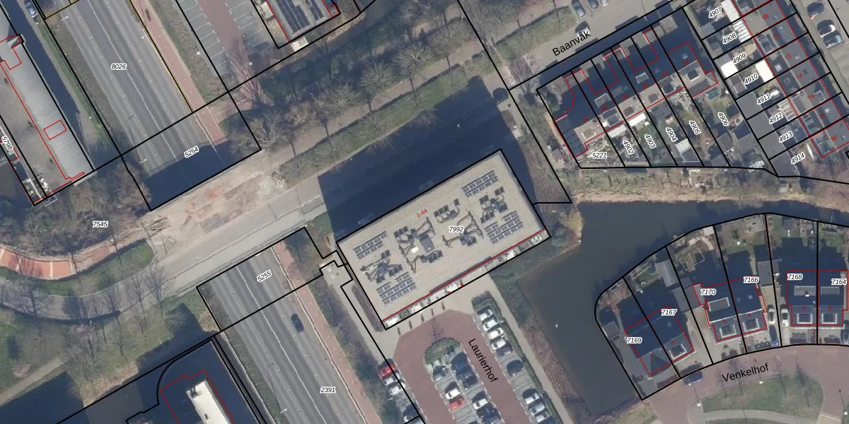 Het adres ligt op het perceel AMR03-C-7992, dat zich in de kadastrale gemeente Aalsmeer bevindt. De gemiddelde perceelgrootte in Aalsmeer is 1739,55 m². Dit perceel is kleiner: de perceeloppervlakte bedraagt 1060 m². De grootste perceeloppervlakte in de kadastrale gemeente is 98,4 ha. De kleinste oppervlakte bedraagt 0 m². Op het perceel zijn 44 adressen aanwezig. De huidige grenzen van het perceel zijn digitaal in de Basisregistratie Kadaster (BRK) geregistreerd op 28-07-2023.