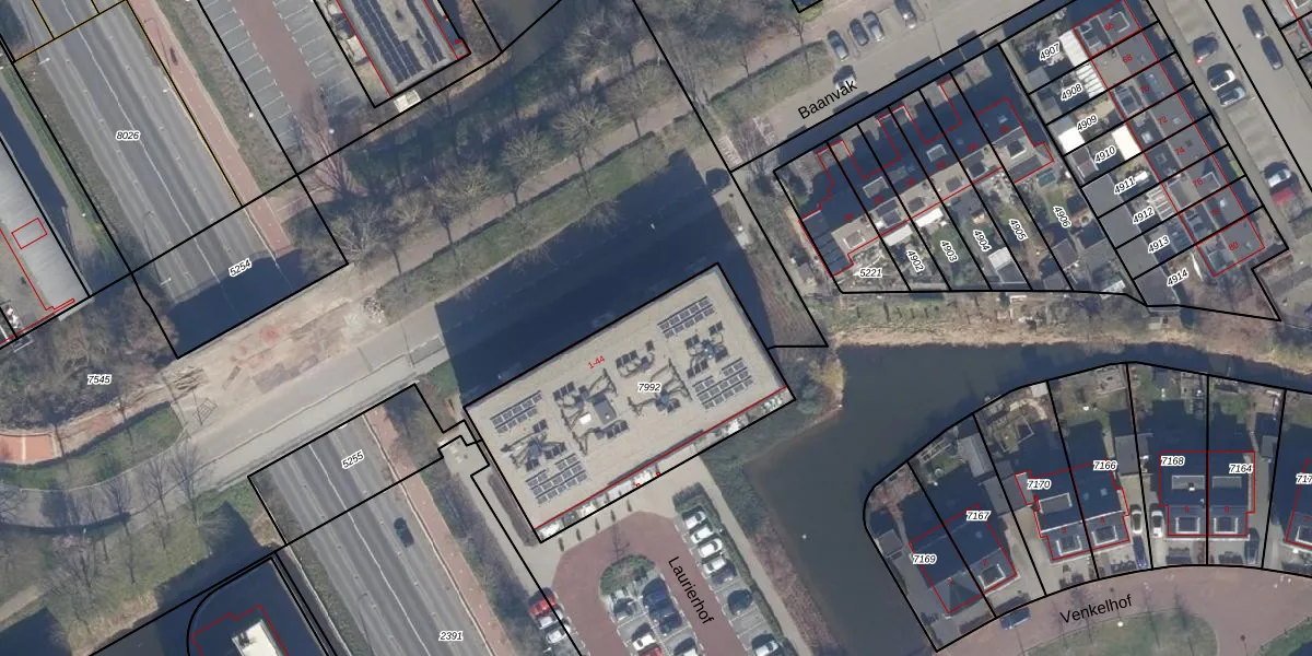 Het adres ligt op het perceel AMR03-C-7992, dat zich in de kadastrale gemeente Aalsmeer bevindt. De gemiddelde perceelgrootte in Aalsmeer is 1739,55 m². Dit perceel is kleiner: de perceeloppervlakte bedraagt 1060 m². De grootste perceeloppervlakte in de kadastrale gemeente is 98,4 ha. De kleinste oppervlakte bedraagt 0 m². Op het perceel zijn 44 adressen aanwezig. De laatste wijziging in het de Basisregistratie Kadaster (BRK) was op 28-07-2023.