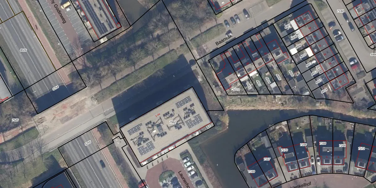 Het adres ligt op het perceel AMR03-C-7992, dat zich in de kadastrale gemeente Aalsmeer bevindt. De gemiddelde perceelgrootte in Aalsmeer is 1739,55 m². Dit perceel is kleiner: de perceeloppervlakte bedraagt 1060 m². De grootste perceeloppervlakte in de kadastrale gemeente is 98,4 ha. De kleinste oppervlakte bedraagt 0 m². Op het perceel liggen in totaal 44 adressen. De huidige grenzen van het perceel zijn digitaal in de Basisregistratie Kadaster (BRK) geregistreerd op 28-07-2023.