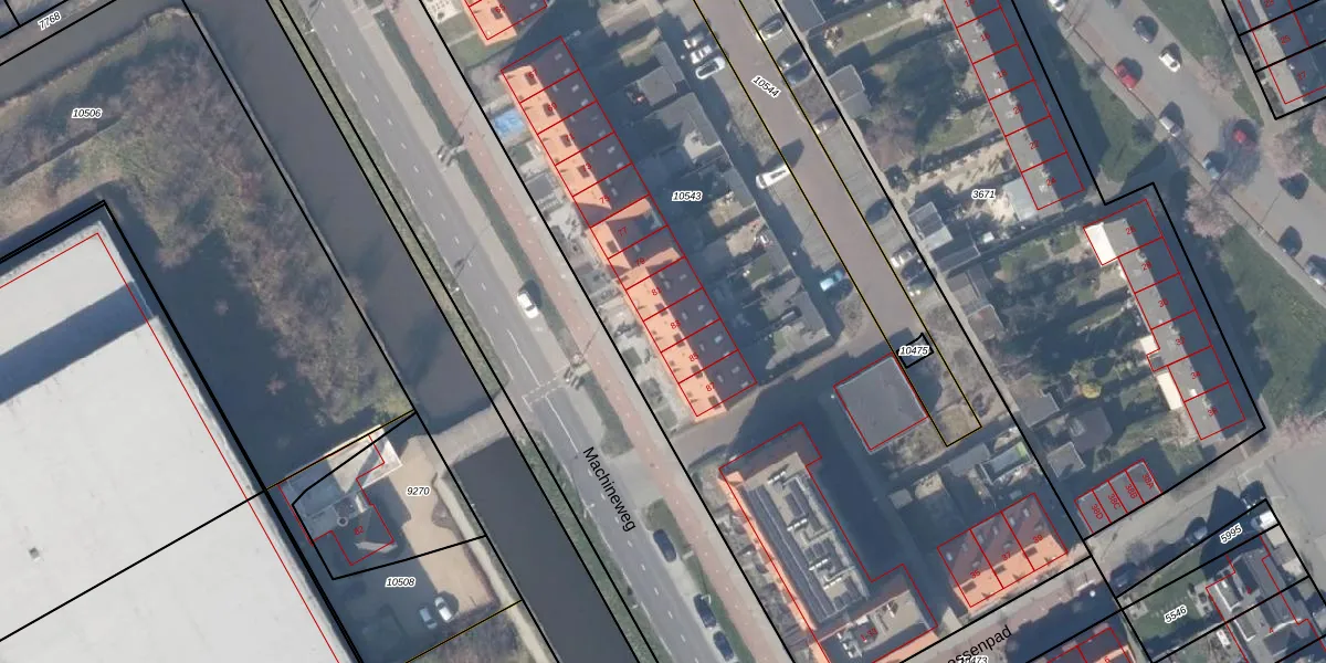 Het perceel waarop Machineweg 83 staat heeft een oppervlakte van 6533 m². Dit is een zeer groot perceel. De perceeloppervlakte wordt geregistreerd door het Kadaster. Gedetailleerde informatie over de maten van dit perceel kunt u vinden in het rapport Kadastrale kaart met maatvoering van Machineweg 83.