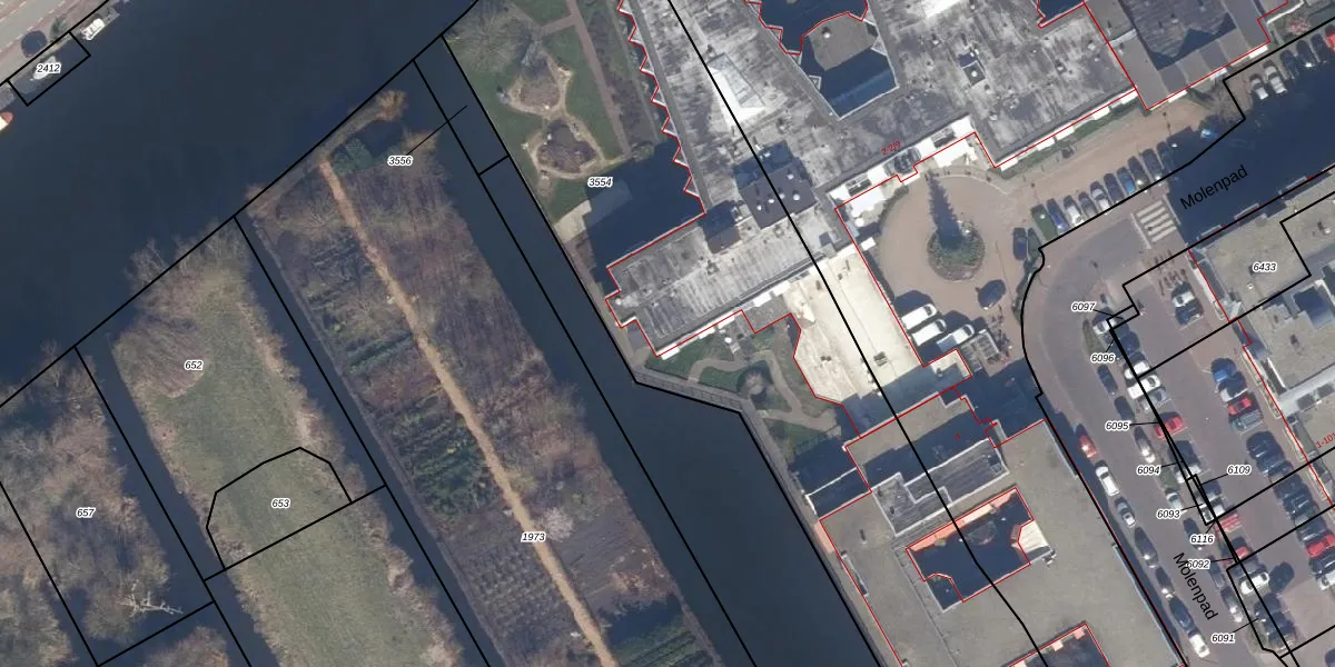 Het perceel waarop Molenpad 2-106 staat heeft een oppervlakte van 6860 m². Dit is een zeer groot perceel. De perceeloppervlakte wordt geregistreerd door het Kadaster. Gedetailleerde informatie over de maten van dit perceel kunt u vinden in het rapport Kadastrale kaart met maatvoering van Molenpad 2-106.