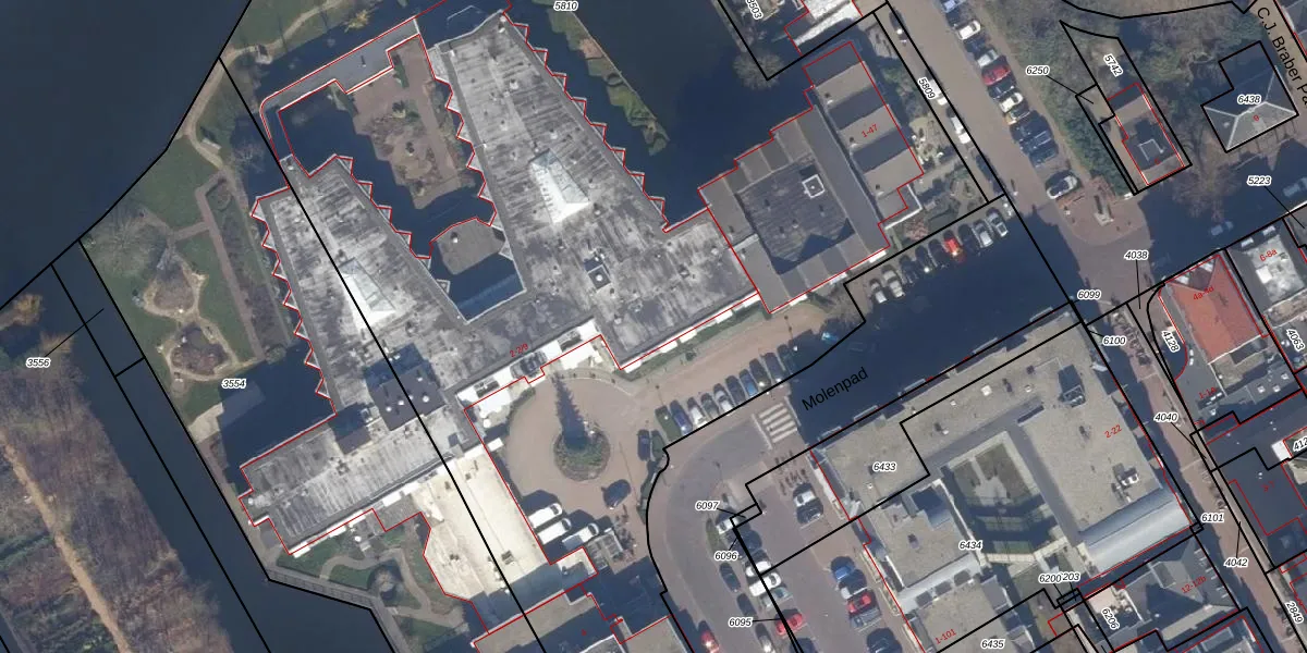 Het perceel waarop Molenpad 2-139 staat heeft een oppervlakte van 1,1 ha. Dit is een zeer groot perceel. De perceeloppervlakte wordt geregistreerd door het Kadaster. Gedetailleerde informatie over de maten van dit perceel kunt u vinden in het rapport Kadastrale kaart met maatvoering van Molenpad 2-139.