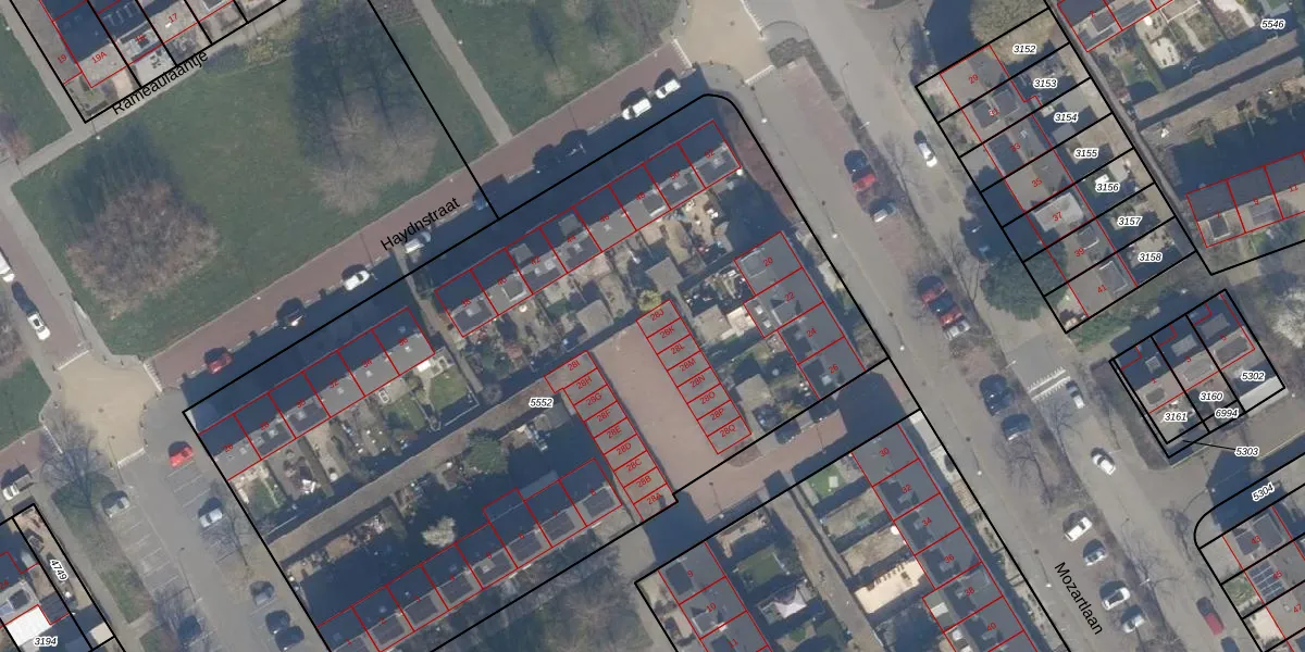 Het perceel waarop Mozartlaan 28-J staat heeft een oppervlakte van 4888 m². Dit is een zeer groot perceel. De perceeloppervlakte wordt geregistreerd door het Kadaster. Gedetailleerde informatie over de maten van dit perceel kunt u vinden in het rapport Kadastrale kaart met maatvoering van Mozartlaan 28-J.