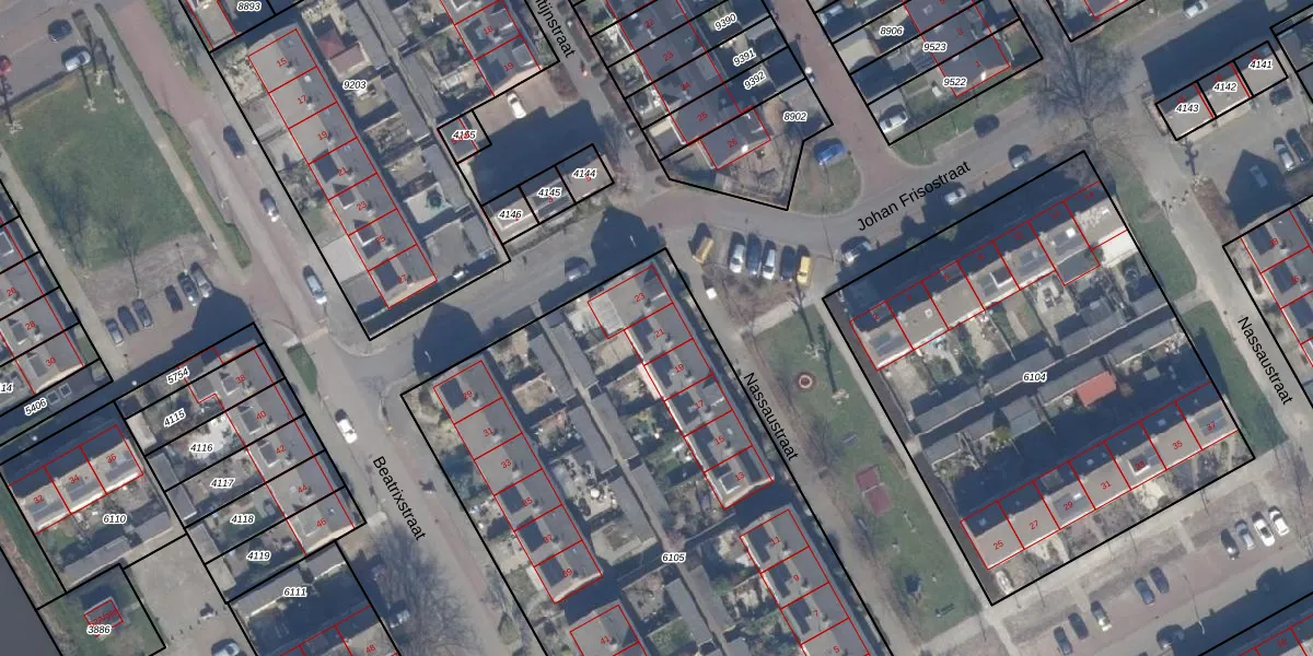 Het perceel waarop Nassaustraat 21 staat heeft een oppervlakte van 3765 m². Dit is een zeer groot perceel. De perceeloppervlakte wordt geregistreerd door het Kadaster. Gedetailleerde informatie over de maten van dit perceel kunt u vinden in het rapport Kadastrale kaart met maatvoering van Nassaustraat 21.