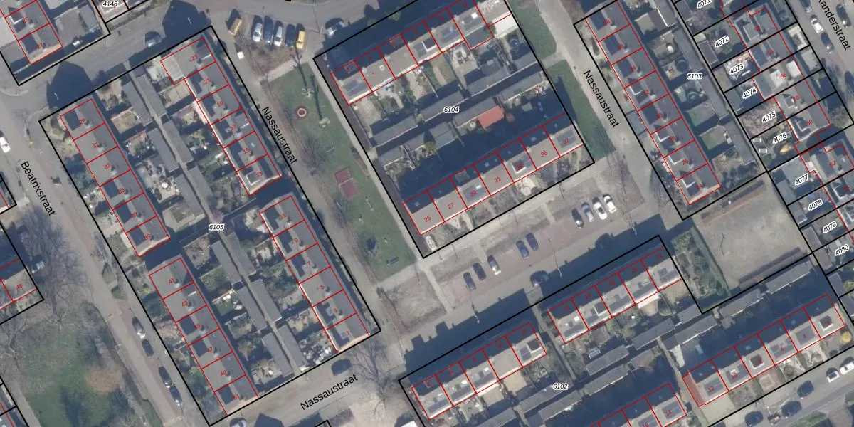 Nassaustraat 25 is gelegen op kadastraal perceel AMR03B6104. Deze kadastrale aanduiding is uniek en wordt gebruikt door het Kadaster om eigendomsrechten en andere zakelijke rechten vast te leggen. Het perceel maakt onderdeel uit van de kadastrale gemeente Aalsmeer.
