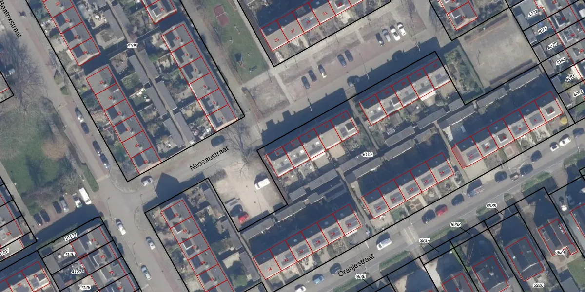 Nassaustraat 6 is gelegen op kadastraal perceel AMR03B6102. Deze kadastrale aanduiding is uniek en wordt gebruikt door het Kadaster om eigendomsrechten en andere zakelijke rechten vast te leggen. Het perceel maakt onderdeel uit van de kadastrale gemeente Aalsmeer.