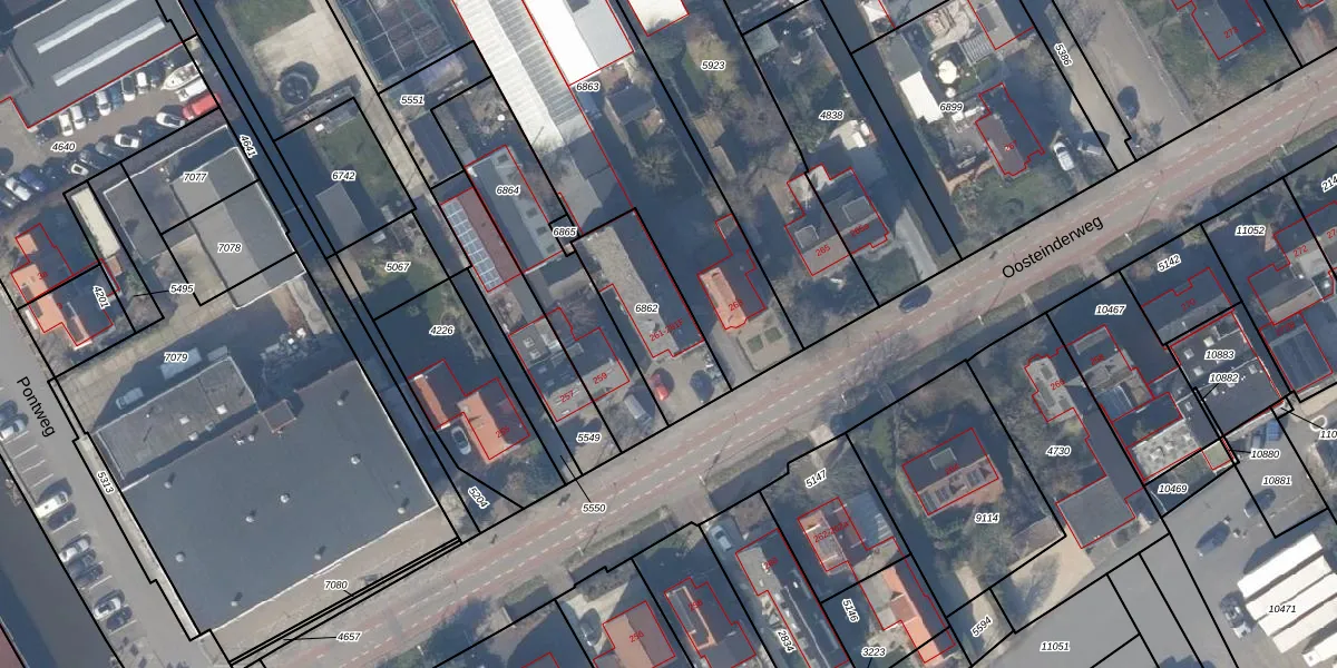 Oosteinderweg 261 is gelegen op kadastraal perceel AMR03G6862. Deze kadastrale aanduiding is uniek en wordt gebruikt door het Kadaster om eigendomsrechten en andere zakelijke rechten vast te leggen. Het perceel maakt onderdeel uit van de kadastrale gemeente Aalsmeer.