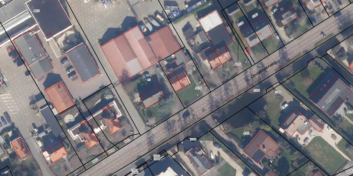 Oosteinderweg 31 is gelegen op kadastraal perceel AMR03G5074. Deze kadastrale aanduiding is uniek en wordt gebruikt door het Kadaster om eigendomsrechten en andere zakelijke rechten vast te leggen. Het perceel maakt onderdeel uit van de kadastrale gemeente Aalsmeer.