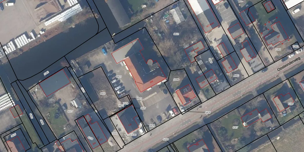 Het perceel waarop Oosteinderweg 315-D staat heeft een oppervlakte van 2495 m². Dit is een zeer groot perceel. De perceeloppervlakte wordt geregistreerd door het Kadaster. Gedetailleerde informatie over de maten van dit perceel kunt u vinden in het rapport Kadastrale kaart met maatvoering van Oosteinderweg 315-D.