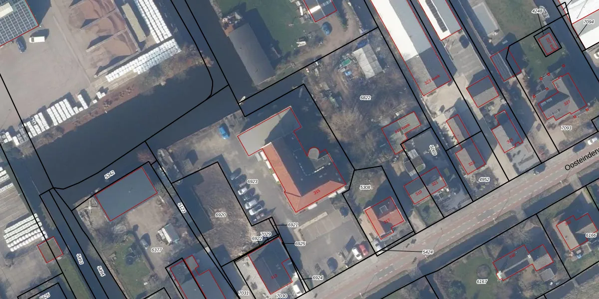 Het perceel waarop Oosteinderweg 315-G staat heeft een oppervlakte van 2495 m². Dit is een zeer groot perceel. De perceeloppervlakte wordt geregistreerd door het Kadaster. Gedetailleerde informatie over de maten van dit perceel kunt u vinden in het rapport Kadastrale kaart met maatvoering van Oosteinderweg 315-G.