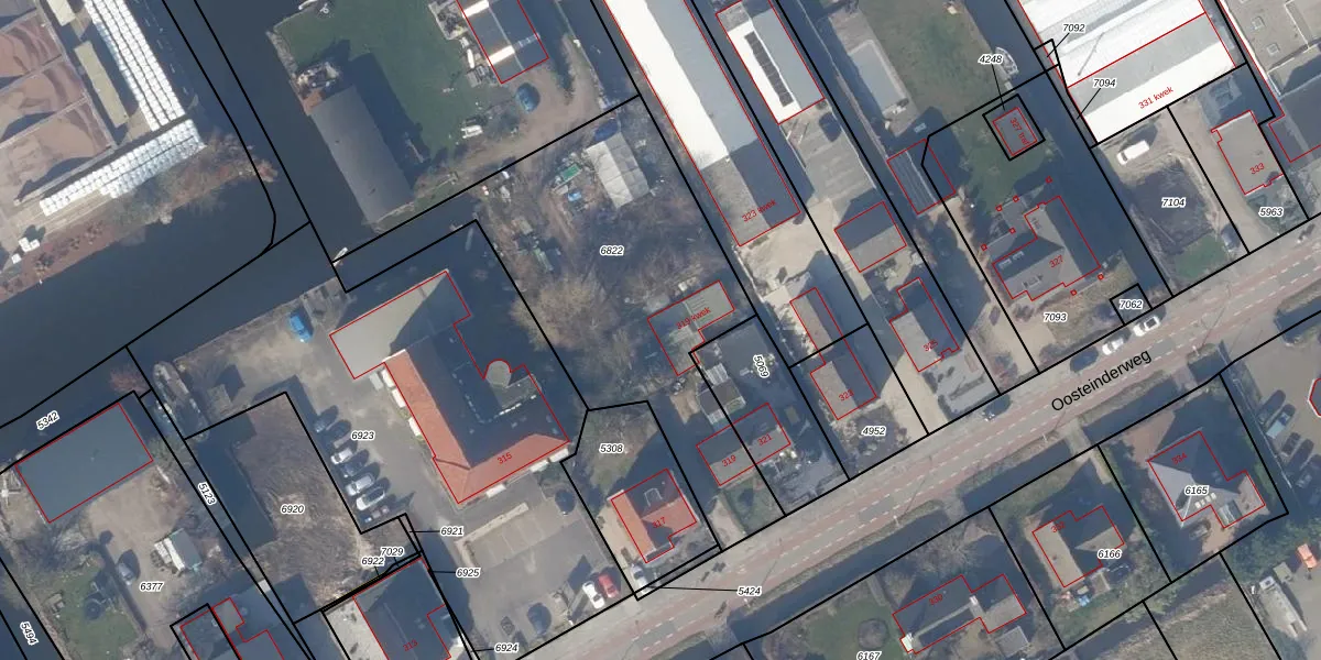 Oosteinderweg 319-kwek is gelegen op kadastraal perceel AMR03G6822. Deze kadastrale aanduiding is uniek en wordt gebruikt door het Kadaster om eigendomsrechten en andere zakelijke rechten vast te leggen. Het perceel maakt onderdeel uit van de kadastrale gemeente Aalsmeer.