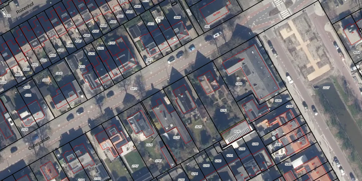Het perceel waarop Ophelialaan 64 staat heeft een oppervlakte van 610 m². Dit is een groot perceel. De perceeloppervlakte wordt geregistreerd door het Kadaster. Gedetailleerde informatie over de maten van dit perceel kunt u vinden in het rapport Kadastrale kaart met maatvoering van Ophelialaan 64.