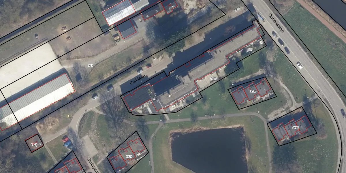 Het perceel waarop Parklaan 30 staat heeft een oppervlakte van 1635 m². Dit is een zeer groot perceel. De perceeloppervlakte wordt geregistreerd door het Kadaster. Gedetailleerde informatie over de maten van dit perceel kunt u vinden in het rapport Kadastrale kaart met maatvoering van Parklaan 30.