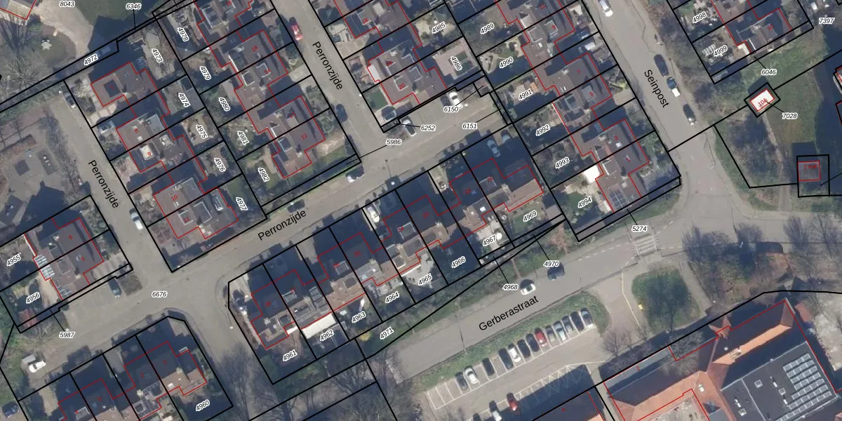 Gebruik de zoekbalk of klik op een perceel voor informatie over de adressen binnen dit perceel.
