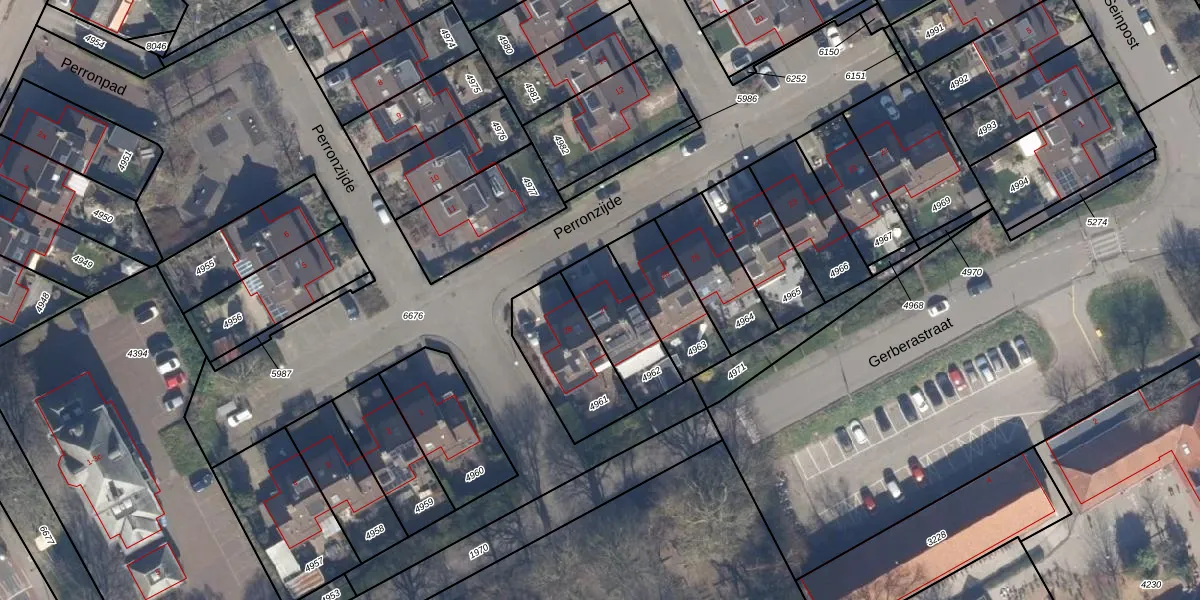 Gebruik de zoekbalk of klik op een perceel voor informatie over de adressen binnen dit perceel.