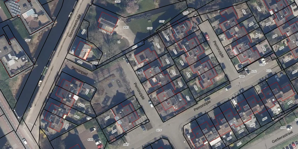 Perronzijde 8 is gelegen op kadastraal perceel AMR03C4974. Deze kadastrale aanduiding is uniek en wordt gebruikt door het Kadaster om eigendomsrechten en andere zakelijke rechten vast te leggen. Het perceel maakt onderdeel uit van de kadastrale gemeente Aalsmeer.
