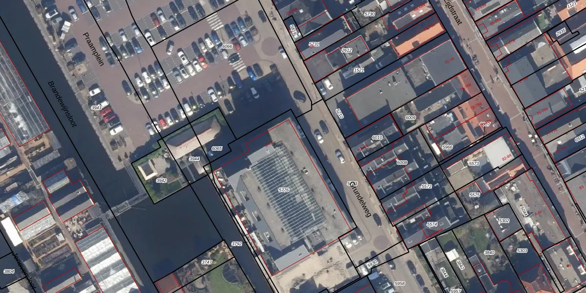 Het perceel waarop Praamplein 55 staat heeft een oppervlakte van 1960 m². Dit is een zeer groot perceel. De perceeloppervlakte wordt geregistreerd door het Kadaster. Gedetailleerde informatie over de maten van dit perceel kunt u vinden in het rapport Kadastrale kaart met maatvoering van Praamplein 55.