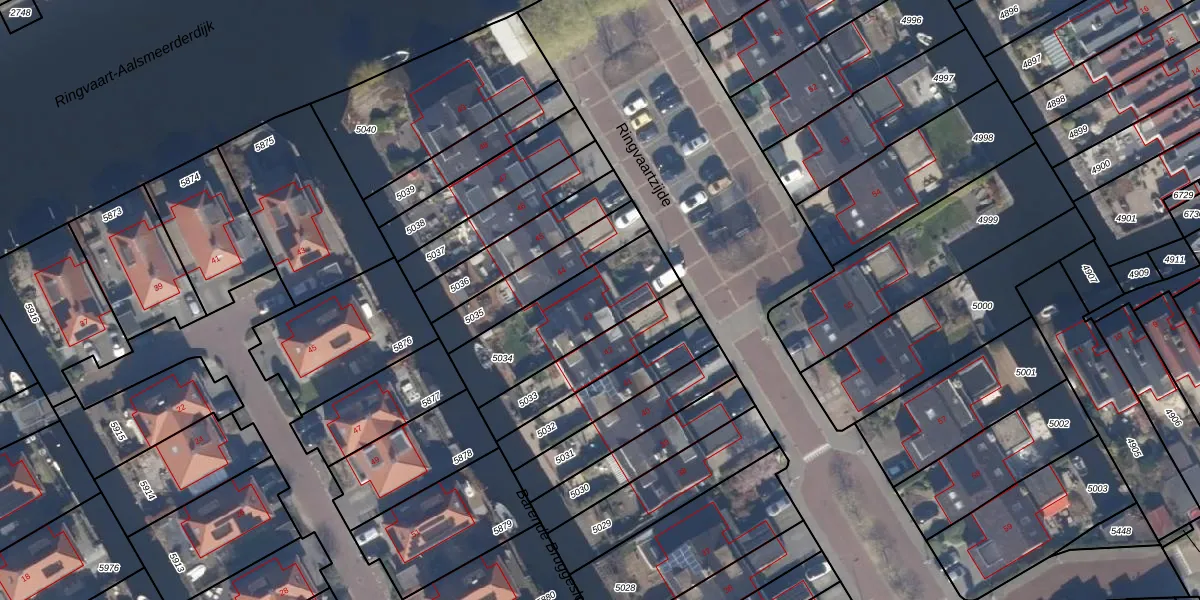 Ringvaartzijde 43 is gelegen op kadastraal perceel AMR03G5034. Deze kadastrale aanduiding is uniek en wordt gebruikt door het Kadaster om eigendomsrechten en andere zakelijke rechten vast te leggen. Het perceel maakt onderdeel uit van de kadastrale gemeente Aalsmeer.