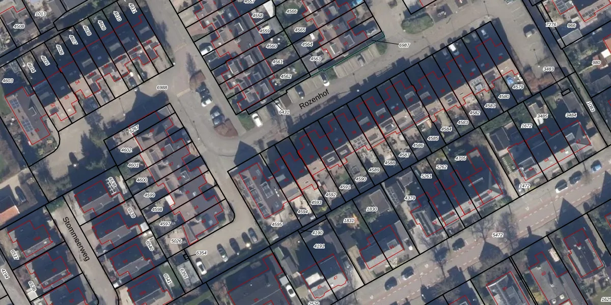 Het perceel waarop Rozenhof 39 staat heeft een oppervlakte van 151 m². Dit is een middelgroot perceel. De perceeloppervlakte wordt geregistreerd door het Kadaster. Gedetailleerde informatie over de maten van dit perceel kunt u vinden in het rapport Kadastrale kaart met maatvoering van Rozenhof 39.