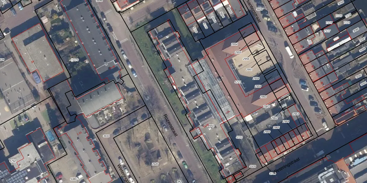 Het perceel waarop Rozenstraat 29 staat heeft een oppervlakte van 1392 m². Dit is een zeer groot perceel. De perceeloppervlakte wordt geregistreerd door het Kadaster. Gedetailleerde informatie over de maten van dit perceel kunt u vinden in het rapport Kadastrale kaart met maatvoering van Rozenstraat 29.
