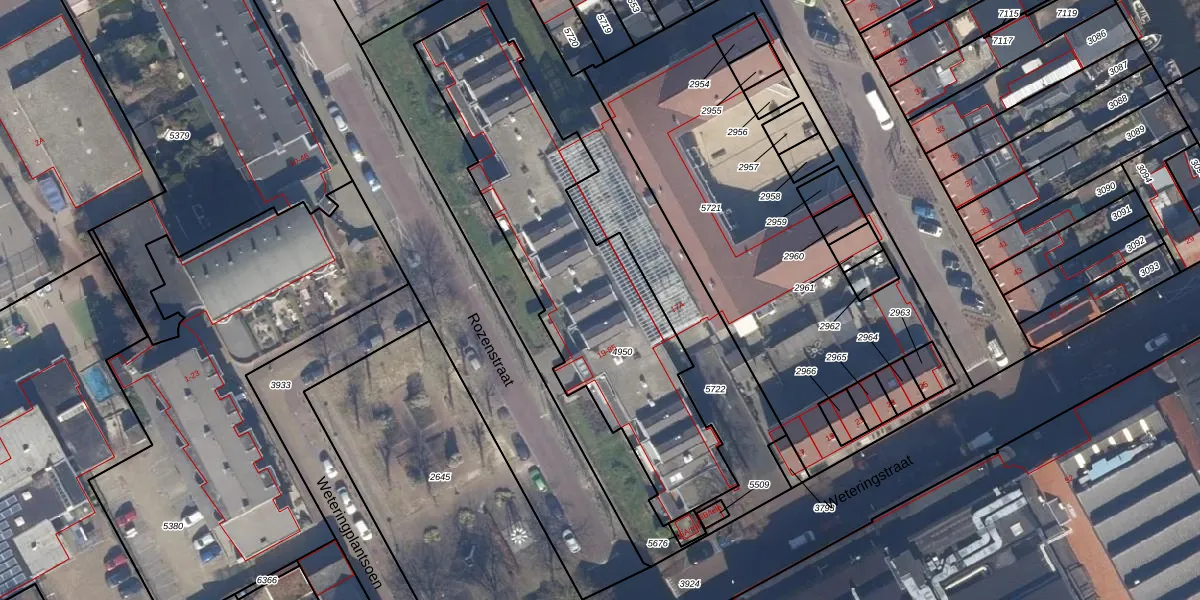 Het perceel waarop Rozenstraat 53 staat heeft een oppervlakte van 1392 m². Dit is een zeer groot perceel. De perceeloppervlakte wordt geregistreerd door het Kadaster. Gedetailleerde informatie over de maten van dit perceel kunt u vinden in het rapport Kadastrale kaart met maatvoering van Rozenstraat 53.