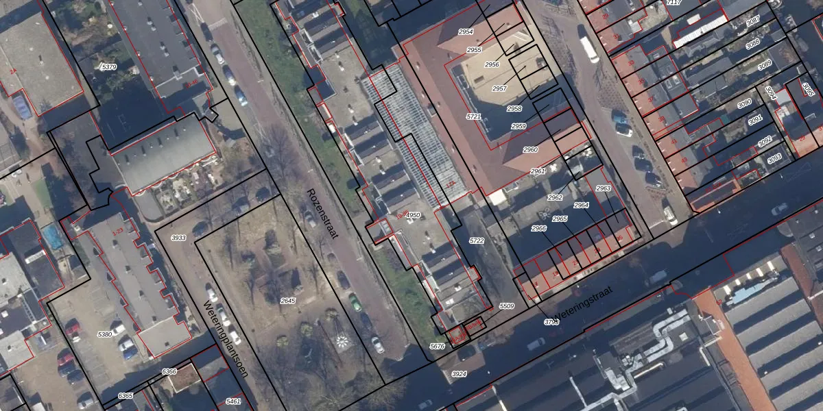 Het perceel waarop Rozenstraat 55 staat heeft een oppervlakte van 1392 m². Dit is een zeer groot perceel. De perceeloppervlakte wordt geregistreerd door het Kadaster. Gedetailleerde informatie over de maten van dit perceel kunt u vinden in het rapport Kadastrale kaart met maatvoering van Rozenstraat 55.