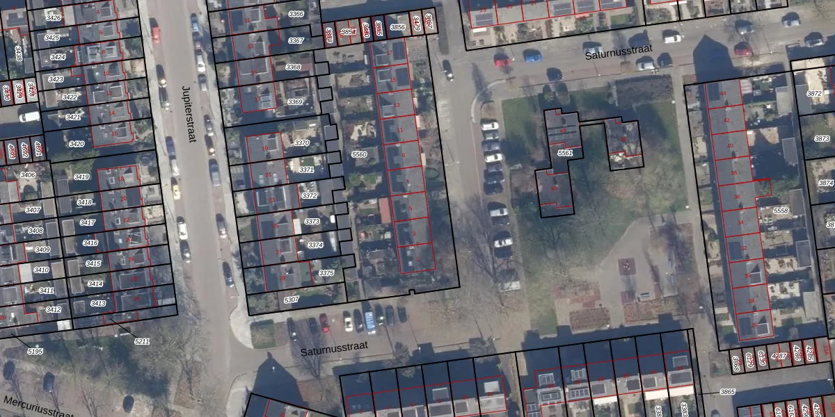Het perceel waarop Saturnusstraat 5 staat heeft een oppervlakte van 1579 m². Dit is een zeer groot perceel. De perceeloppervlakte wordt geregistreerd door het Kadaster. Gedetailleerde informatie over de maten van dit perceel kunt u vinden in het rapport Kadastrale kaart met maatvoering van Saturnusstraat 5.