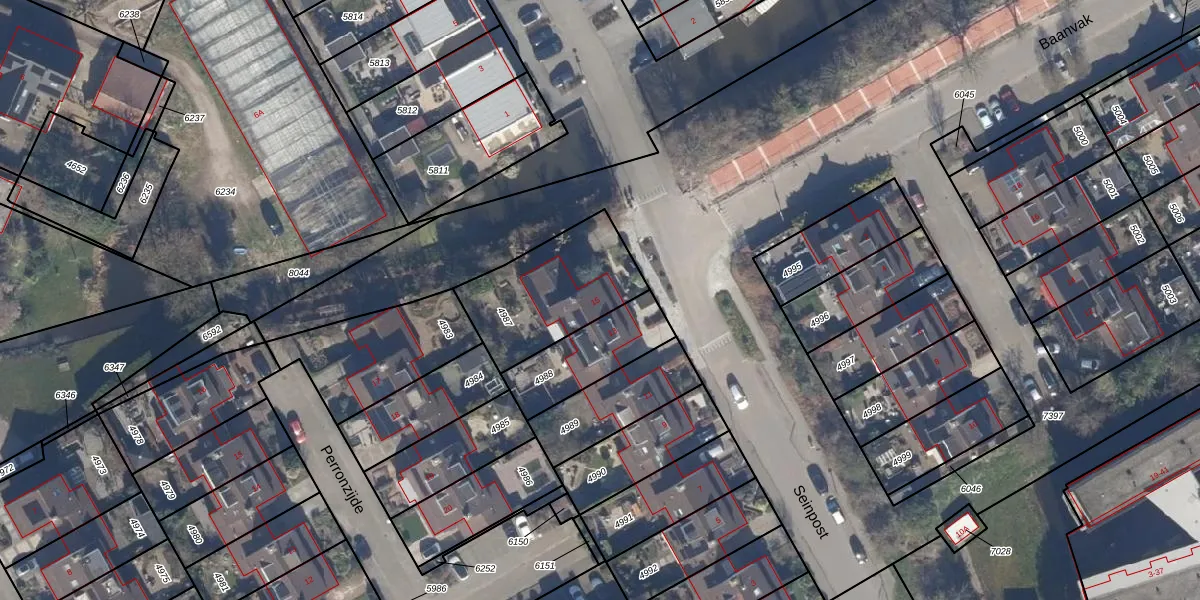 Gebruik de zoekbalk of klik op een perceel voor informatie over de adressen binnen dit perceel.
