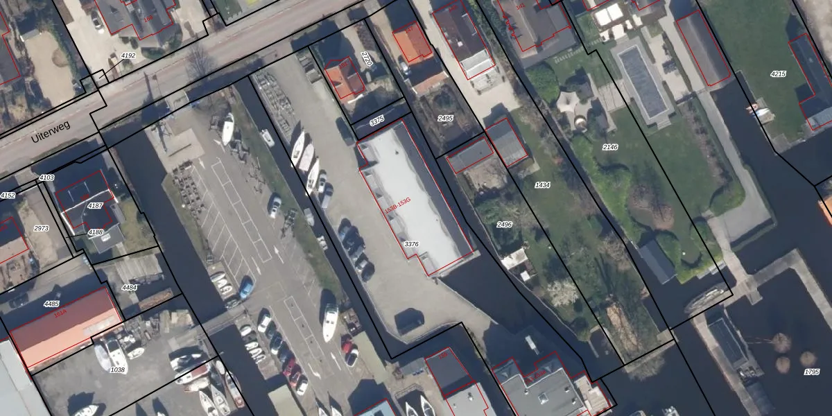 Het perceel waarop Uiterweg 153-D staat heeft een oppervlakte van 2712 m². Dit is een zeer groot perceel. De perceeloppervlakte wordt geregistreerd door het Kadaster. Gedetailleerde informatie over de maten van dit perceel kunt u vinden in het rapport Kadastrale kaart met maatvoering van Uiterweg 153-D.
